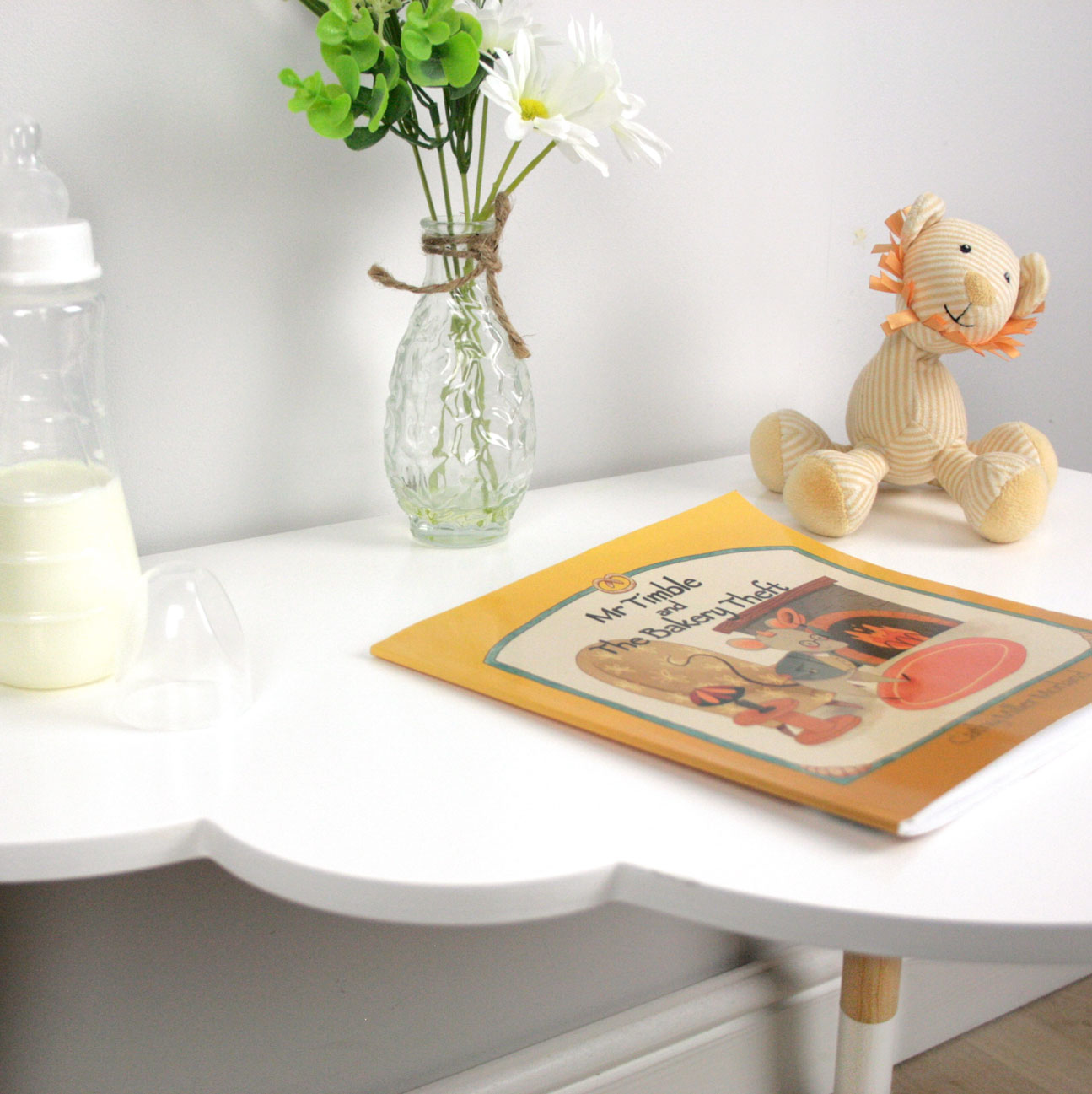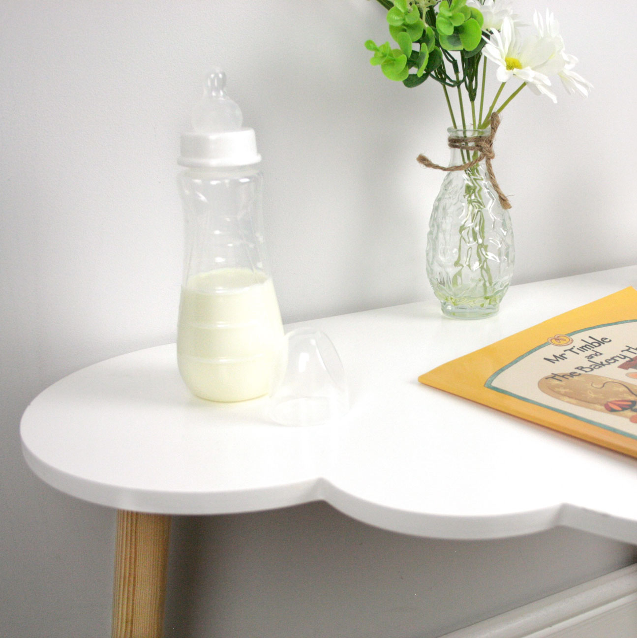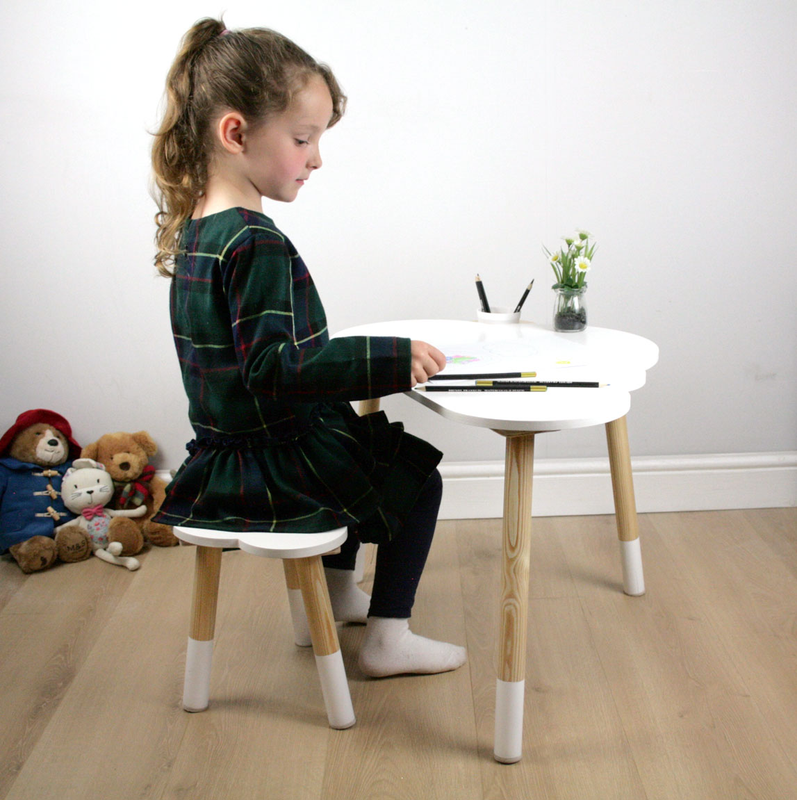Add some magic to your child's nursery or playroom with our Children's Cloud Desk and Stool Set. Handmade from strong and sturdy solid wood, this Scandinavian inspired set features a unique cloud-shaped desk and optional sun-shaped cup holder that adds a touch of magic to any space. Make learning fun and stylish with this multi-function beautiful nursery furniture. Handmade and designed in the UK by shelvee.com
