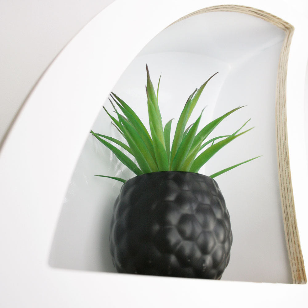 A unique solid, lightweight yet sturdy design made for easy installation and handmade to order from lightweight high grade Norwegian Plywood Spruce, MDF and ABS plastic to form the back of the shelving units.
